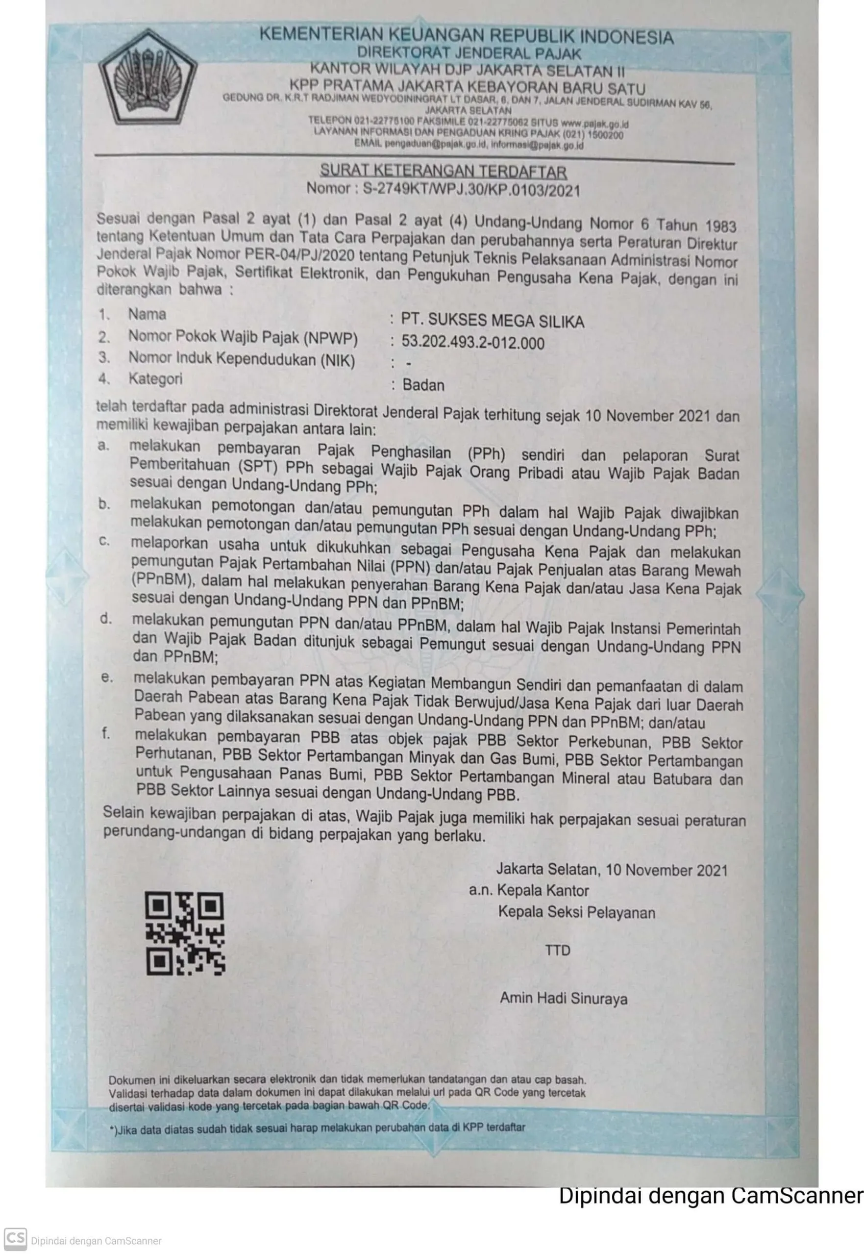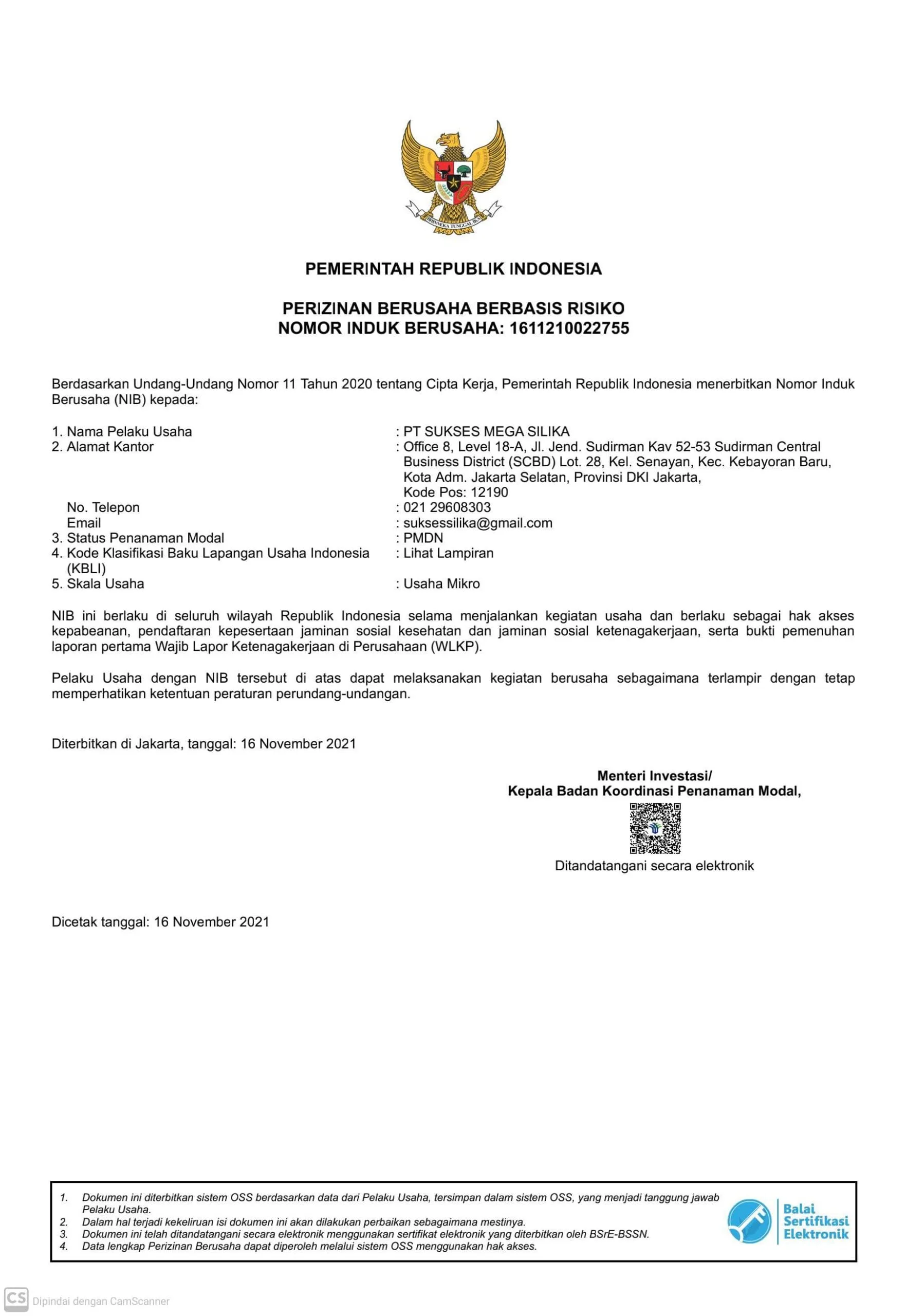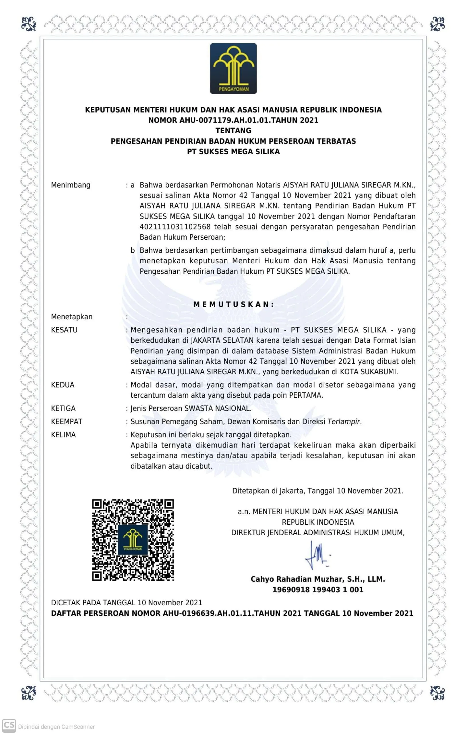 Legalitas PT. SMS